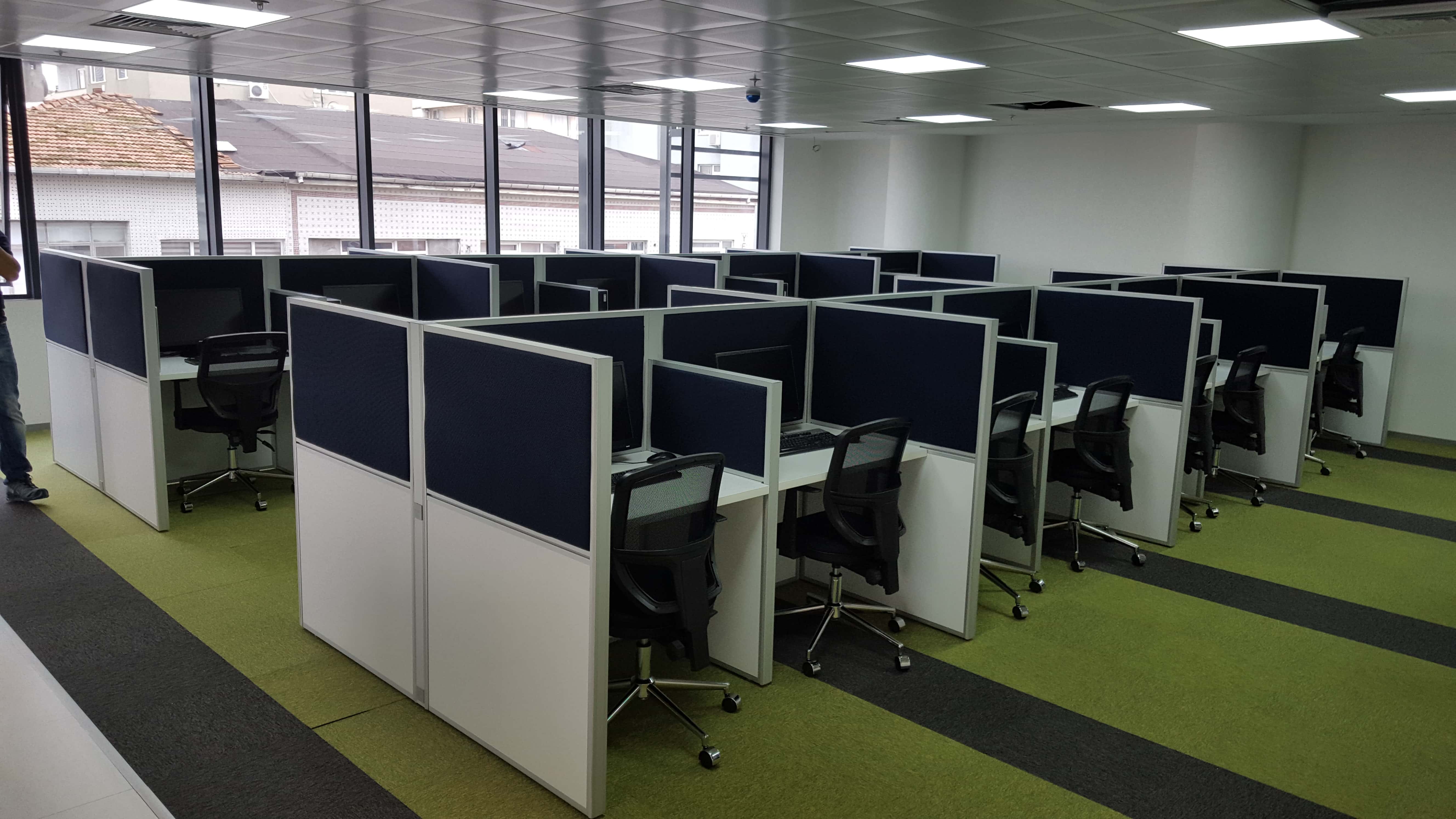 Modern, prestijli, kaliteli, üreticiden size çzel, hızlı üretim ve en uygun fiyatlarla profesyonel call center panel bölme sistemlerimiz seri imalat, hızlı montaj imkanı sağlayarak zamandan dolayısıyla maliyetten tasarruf etmenizi sağlayacaktır. Çağrı merkezleri için özel tasarlanmış modüler panel seperasyon sistemleridir. Call center seperasyon panel sistemlerimizin üzerinde kullanmış olduğumuz özel ses yutucu kumaşlar ile ortamda oluşan ses düzeyini minimum seviyeye indirmekteyiz. Çağrı merkezi masa panellerimize entegre edilmiş kablolamanın tamamen çağrı merkezi sistemlerimizin içersinden ilerlediği üzerine prizleme yapılabilen kablo kanalı çözümleri ile hem görüntü kirliliğini ortadan kaldırmaktayız. Hem de daha sonraki dönemlerde olası müdahaleler için kolay ulaşılabilir hale getirmekteyiz.